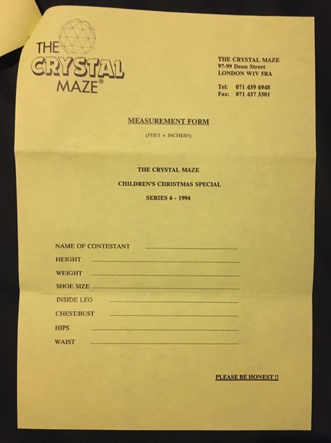 Regular contributor Phil Newton-England emailed me over this yesterday, photos of an application form for the 1994 Crystal Maze Christmas Special, the last kids Christmas special that would be produced.